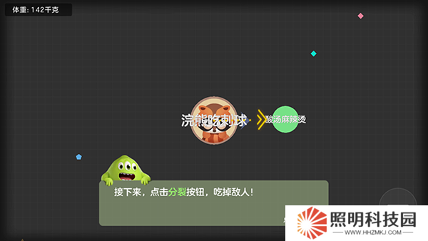 3、場景中會出現(xiàn)綠色的刺球,吞噬它玩家們就會自動進(jìn)行分裂。