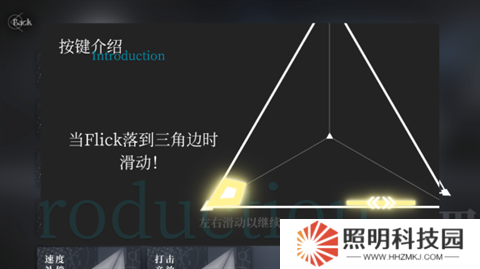 2、Flick按鍵:當(dāng)Flick落到三角邊時(shí)滑動(dòng)。