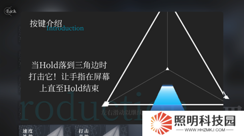 4、Hold按鍵:當(dāng)Hold落到三角邊時(shí)打擊它。讓手指在屏幕上直至Hold結(jié)束。