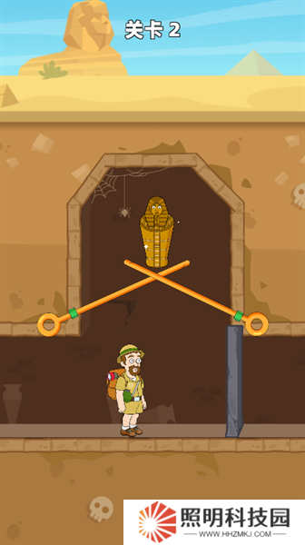 3、游戲采用簡單有趣的Q版風(fēng)格,游戲玩法非常有趣,通關(guān)順序,抽出棍棒,以幫助獵人安全到達(dá)寶藏。