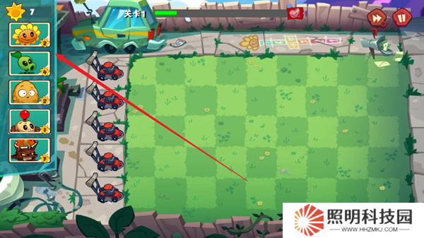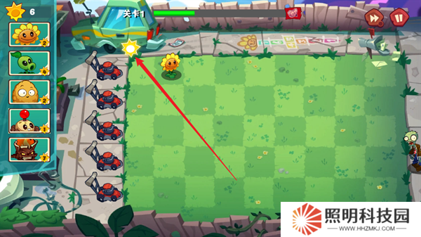 4、在關(guān)卡之中你首先需要種植向日葵,它能夠產(chǎn)出陽光,來幫助你更好的種植其他植物。