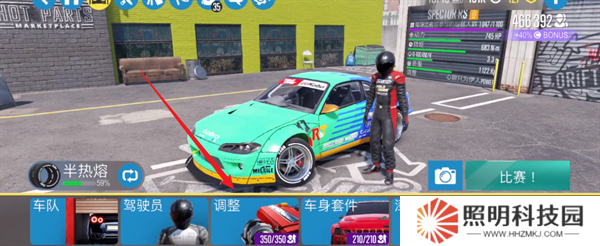3、其中需要對賽車的各種部件進(jìn)行修改的話,你要點(diǎn)擊下方的調(diào)整模塊。