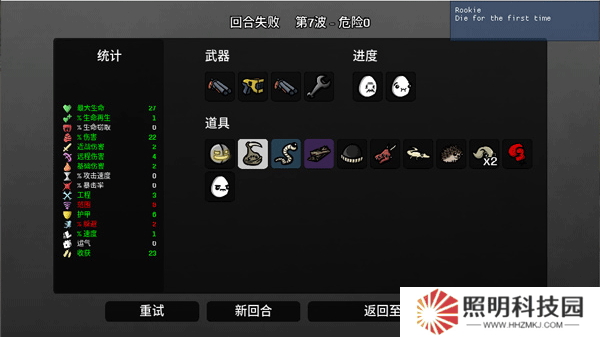 6、玩家們死亡之后,就會(huì)對你當(dāng)局的表現(xiàn)進(jìn)行一定的統(tǒng)計(jì),你可以重新開始游戲。