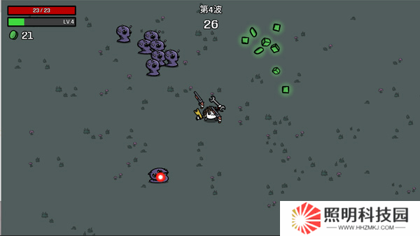 4、擊殺怪物能夠獲取到一定的經(jīng)驗(yàn)值,左上角綠色的經(jīng)驗(yàn)條滿了之后就會(huì)升級(jí),你可以從多種隨機(jī)的能力當(dāng)中挑選一種進(jìn)行提升。