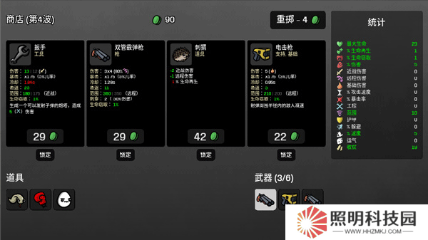 5、每一波的怪物結(jié)束之后,你還能夠進(jìn)入到商店之中,消耗自己的資金來購買裝備武器。