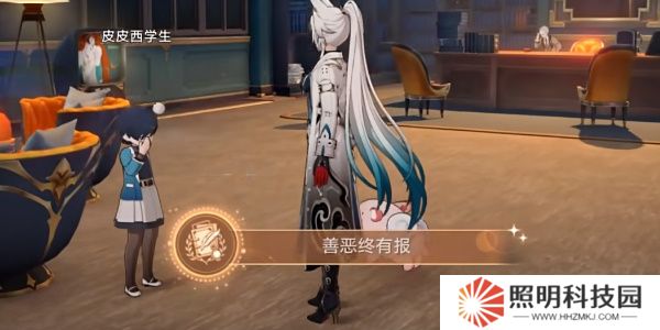 2、出錨點后我們進入校長室,在校長室中我們找到一個npc皮皮西學生,和她對話就可以解鎖成就【善惡終有報】。