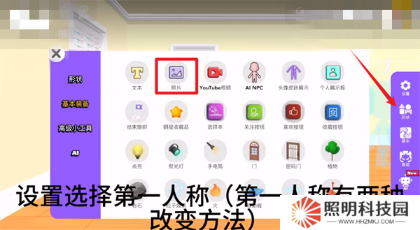4、進入到空房間的模板之后,玩家們要再右邊的【設置】里面將照相機調整成【第一人稱】。