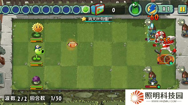 3、闖關(guān)的過程中玩家們可以靈活的運用植物們的技能,幫助我們輕松順利的完成關(guān)卡通關(guān)。
