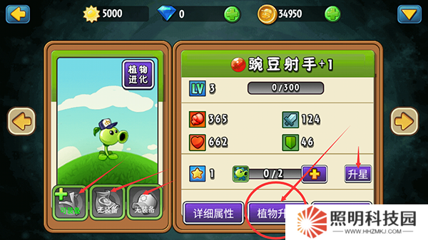 3、在植物信息界面中消耗資源點擊植物升級提升植物的等級。