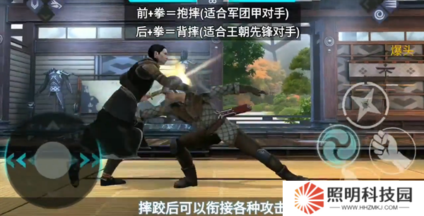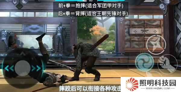 2、然后使用方向鍵+拳擊的組合技打出摔跤的操作。