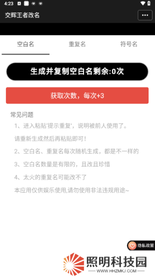 免廣告獲得獎勵,點擊獲取次數(shù)每次都能+3,注意別點太多哦夠用就行,因為每一次進去都會重置[滑稽],樓主已經(jīng)搶占了兩個熱門名字了“蔡徐坤” ,“趙麗穎”,你們趕緊行動吧[開心]
