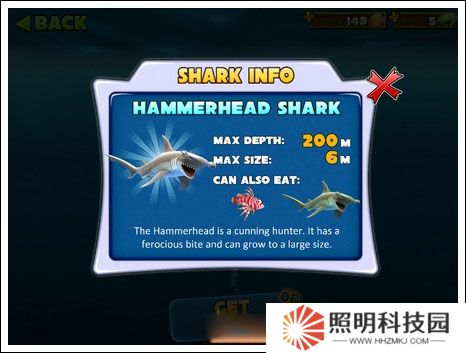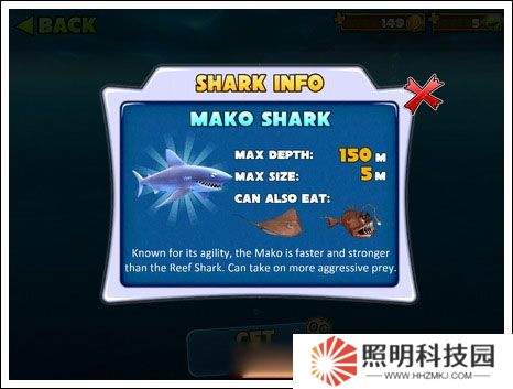 這條鯊魚的速度和下潛深度有所提高,能多吃兩種魚類,但需要25顆鉆石,性價比不高。