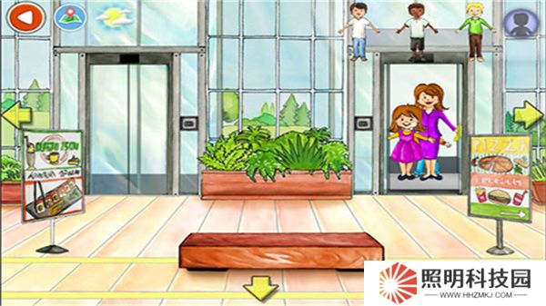 1、首先打開(kāi)娃娃屋plus游戲,來(lái)到電梯口,玩家們點(diǎn)擊按鈕可以開(kāi)門(mén);