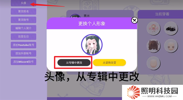8、然后點(diǎn)擊左側(cè)的頭像,并在彈窗中選擇【從專輯中更改】。