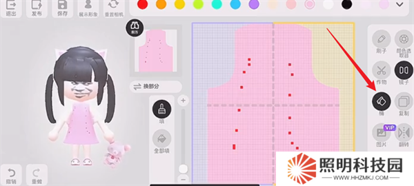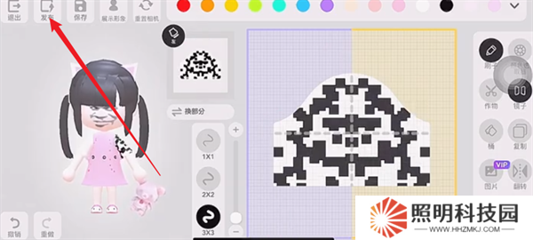 13、如果對(duì)自己的衣服射設(shè)計(jì)完畢之后,就能夠點(diǎn)擊左上角的【發(fā)布】進(jìn)行保存。