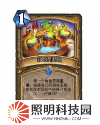 效果:使一個(gè)角色獲得圣盾,如果其已經(jīng)擁有圣盾,使其在本回合中獲得+1攻擊力。(還有3杯)