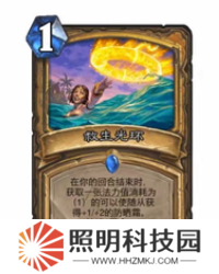 效果:在你的回合結(jié)束時(shí),獲取一張法力值消耗為(1)的可以使隨從獲得+1/+2的防曬霜,持續(xù)3回合。