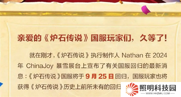 爐石傳說(shuō)國(guó)服將會(huì)在2024年9月25日回歸,玩家們可以準(zhǔn)時(shí)進(jìn)入到游戲內(nèi)部進(jìn)行游玩。