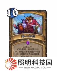 效果:召喚3個(gè)5/5的海盜,在本局對(duì)戰(zhàn)中,你每對(duì)角色施放一個(gè)法術(shù),本牌的法力值消耗便減少(1)點(diǎn)。