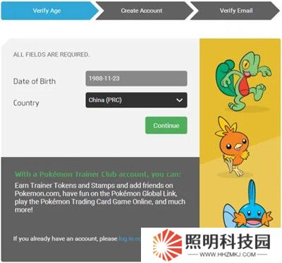 3、在注冊頁面中,填寫你的生日和所在地區(qū),然后點擊綠色的【continue】按鈕。