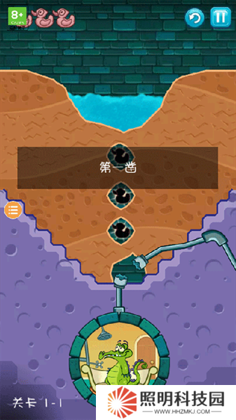 4、在關(guān)卡之中你需要通過引流來(lái)讓水流最終可以流到小鱷魚的浴室里面,以此達(dá)成洗澡的目標(biāo)。