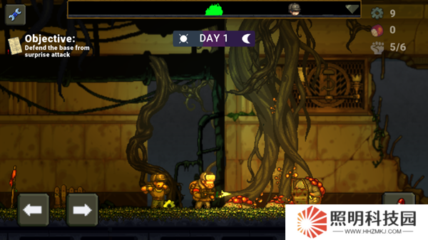 4、左下角的按鍵能夠控制角色移動(dòng),右邊這個(gè)按鍵增加后勤士兵。