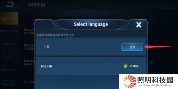 3、接著玩家們在彈出的界面中選擇中文點(diǎn)擊使用。