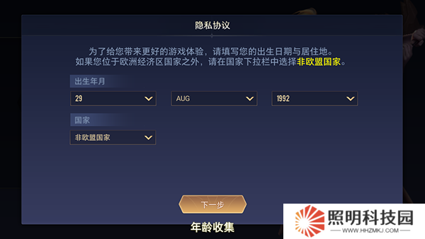 4、下一步玩家們需要填寫生日信息,填寫完成后點擊下一步。