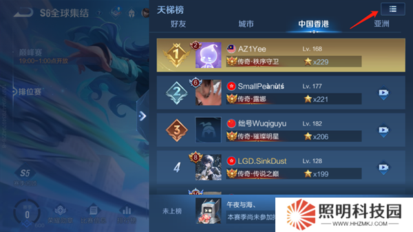 3、在排位界面中先點擊切換按鍵,再點擊排行榜。