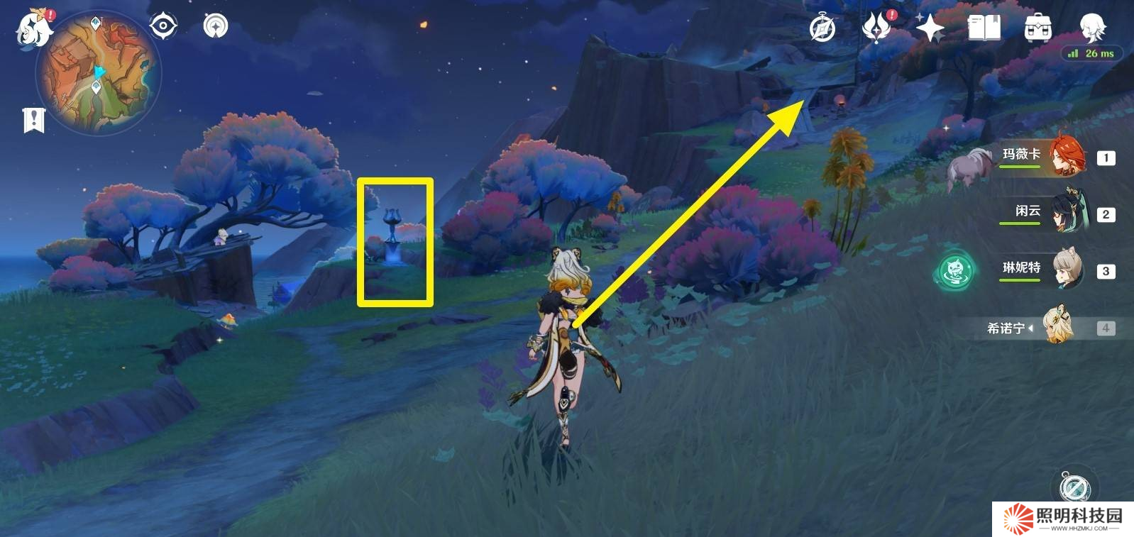 1、從七天神像出發(fā),沿著地圖西側(cè)的主路向前走。