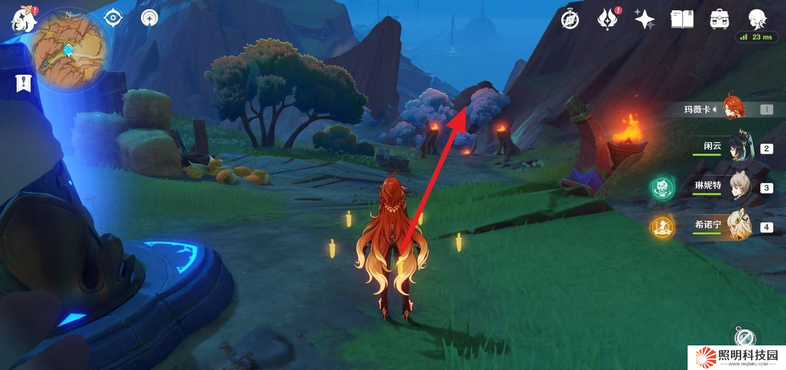 4、穿過(guò)石頭障礙后,繼續(xù)沿主路走,在右側(cè)可以看到一個(gè)新的傳送錨點(diǎn),靠近后激活它。