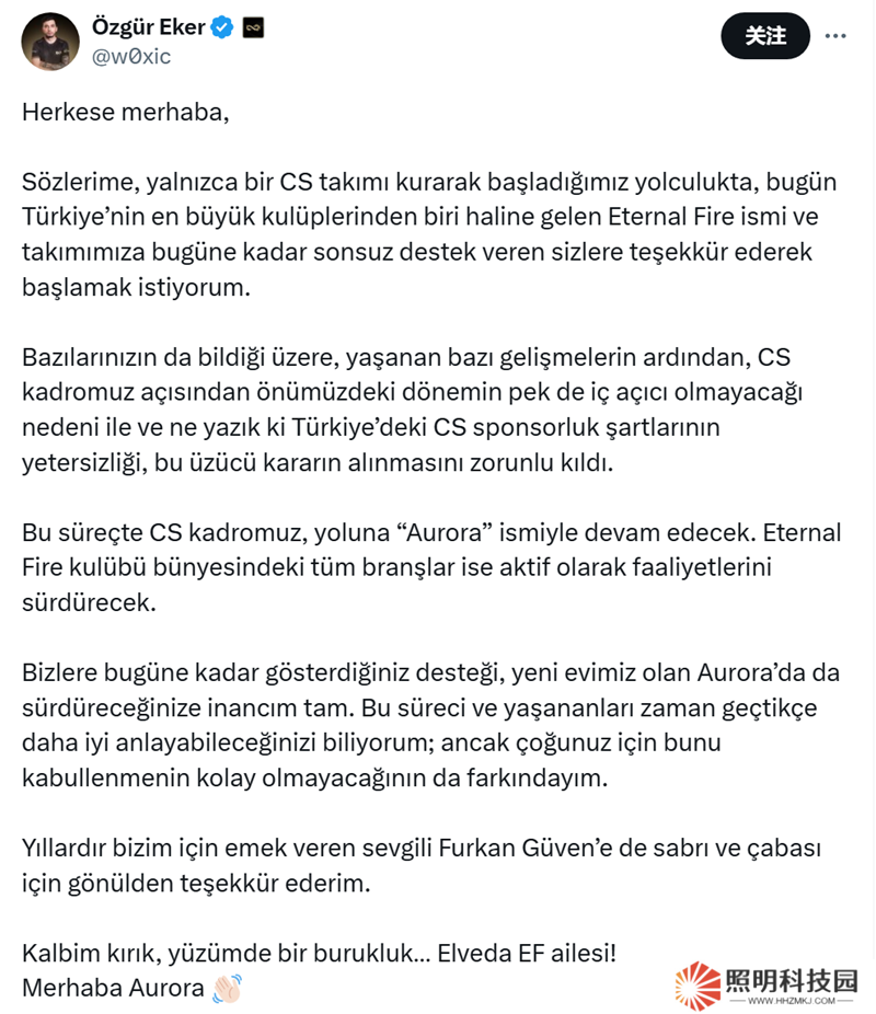 “由于接下來的這段時間對我們的CS戰(zhàn)隊(duì)陣容來說并不是非常有利,而且很遺憾土耳其缺乏對CS項(xiàng)目的贊助條件,所以我們不得不做出這個令人難過的決定。