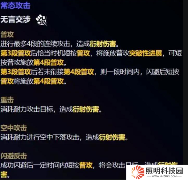 普攻方面一共是4段攻擊,其中第4段普攻的觸發(fā)機(jī)制比較特殊,還要看情況,在第3段普通后處罰,這個(gè)到時(shí)候看具體如何操作,主要還是造成衍射傷害的。
