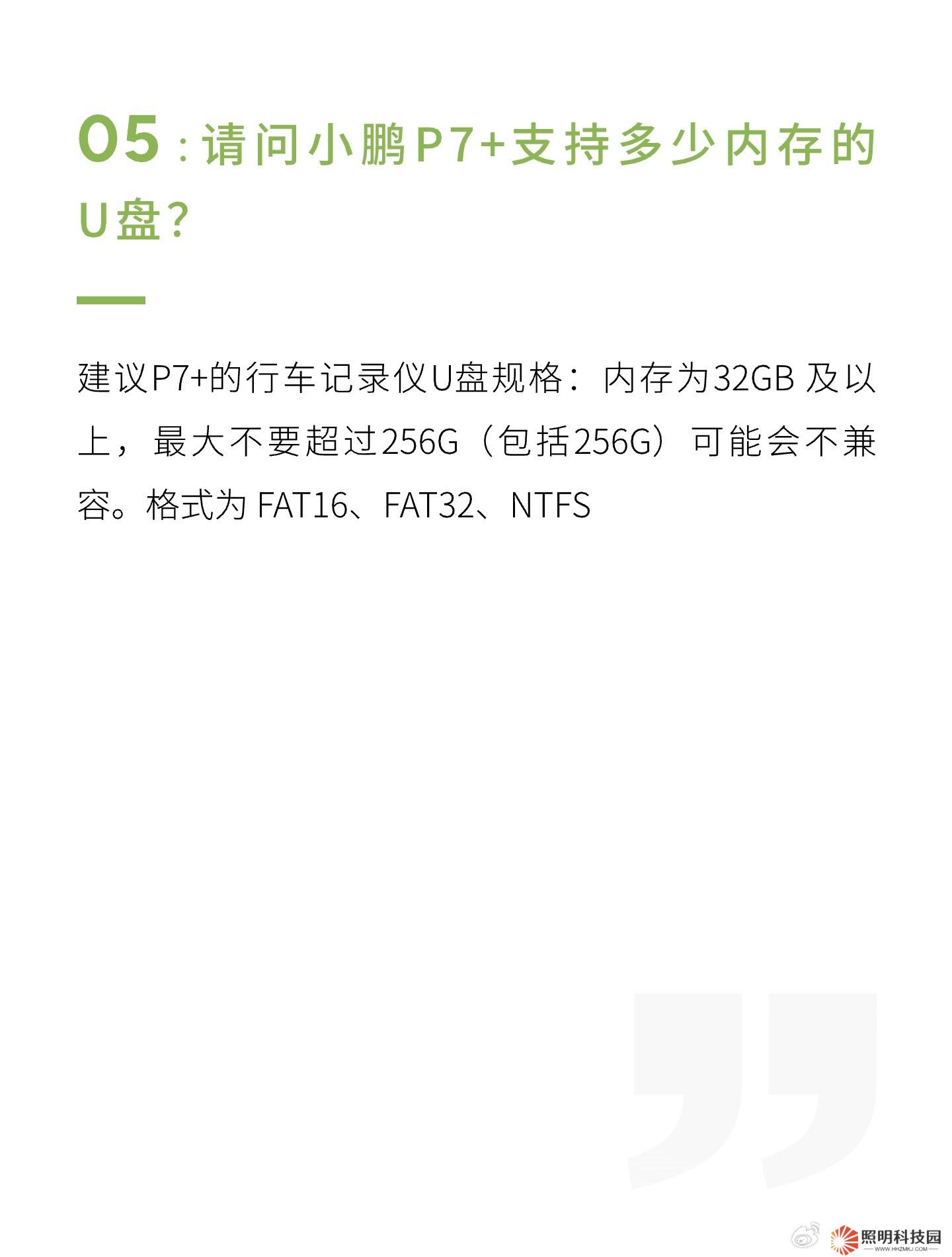 建議 P7+ 的行車記錄儀 U 盤規(guī)格:內(nèi)存為 32GB 及以上,最大不要超過 256G(包括 256G)可能會不兼容。格式為 FAT16、FAT32、NTFS。