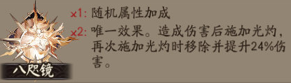 x2:唯一效果。造成傷害后施加光灼,再次施加光灼時移除并提升24%傷害。