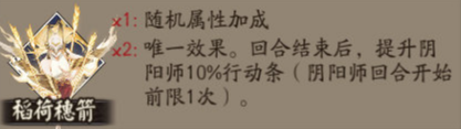 x2:唯一效果?;睾辖Y束后,提升陰陽師10%行動條(陰陽師回合開始前限1次)。