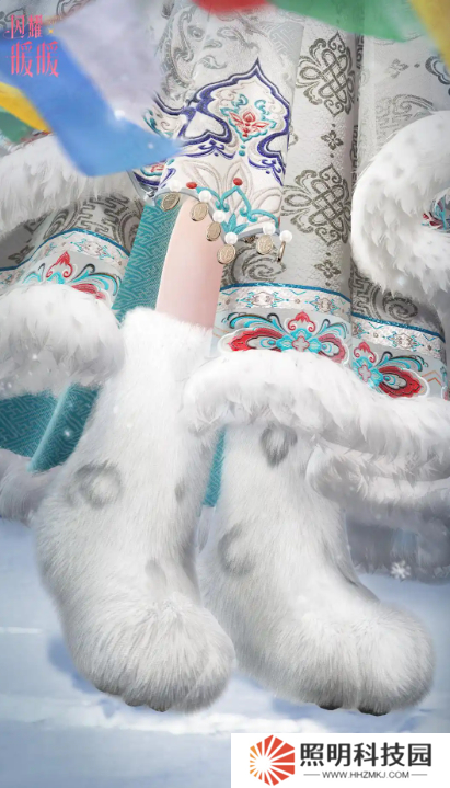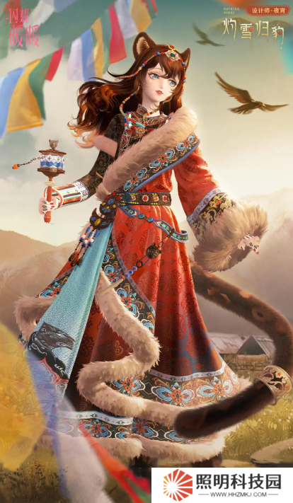 夜宵·拂雪隱豹設(shè)計(jì)理念和思路:若健碩的長尾足以掃除千年不化的積雪,那是否能破開凍土中的沉疴舊俗?夜宵披上紋樣繁復(fù)的外袍踏出神廟,于重山之上,她望見了自己,也望見了所有不被拘束的生命。