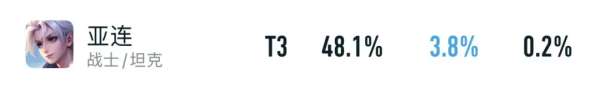 也正因如此,亞連的巔峰賽勝率才會跌到48.1%,就連出場率都僅剩3.8%了,排在對抗路的墊底位置。