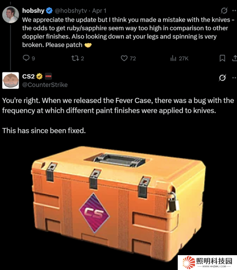 而CS官方在社交平臺上確認確實存在皮膚概率BUG,目前該BUG已經(jīng)修復。