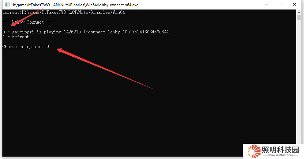 加主機(jī):通過平臺(tái)打開lobby_connect_x64.exe,會(huì)出來(lái)一個(gè)黑框——等玩家建好主機(jī),黑框中輸入對(duì)應(yīng)數(shù)字刷新(Refresh)——找到對(duì)應(yīng)數(shù)字的主機(jī),輸入對(duì)應(yīng)數(shù)字——第一次它會(huì)讓你選擇游戲的exe,你選擇ItTakesTwo.exe打開,他就會(huì)自動(dòng)進(jìn)游戲自己加入你選擇的主機(jī)——等待主機(jī)開始。