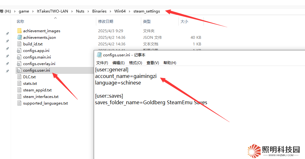 記事本方式打開NutsBinariesWin64steam_settingsconfigs.user.ini,找到account_name=gaimignzi,把gaimignzi改成自己想要的名字。